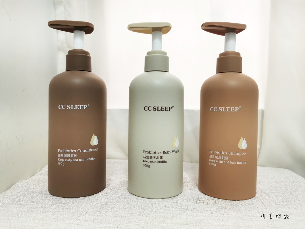 CC SLEEP最有名的益生菌系列,三大明星商品: 分別是益生菌沐浴露、益生菌洗髮露、益生菌護髮乳